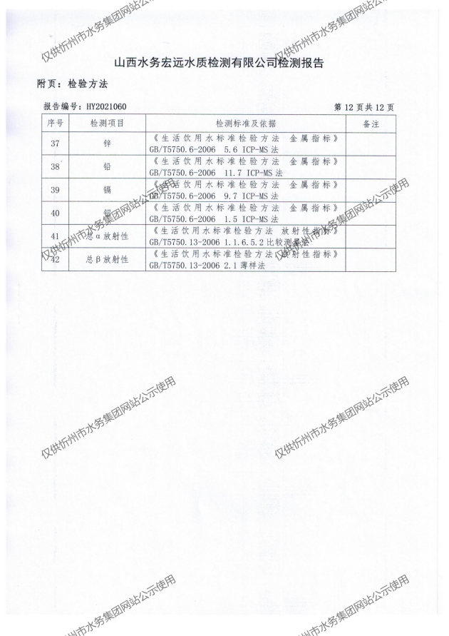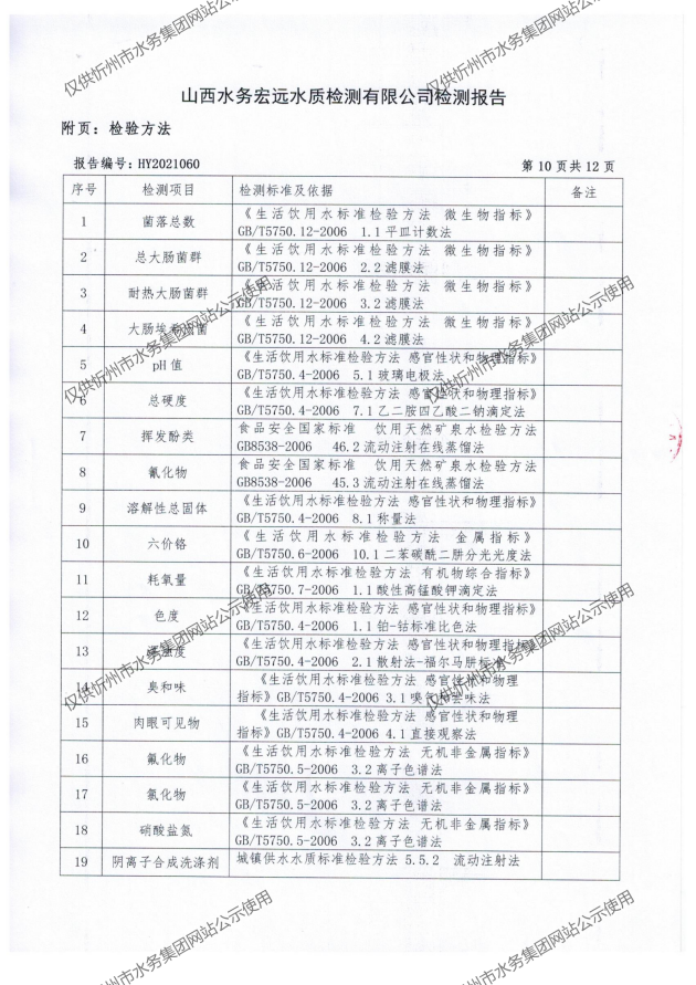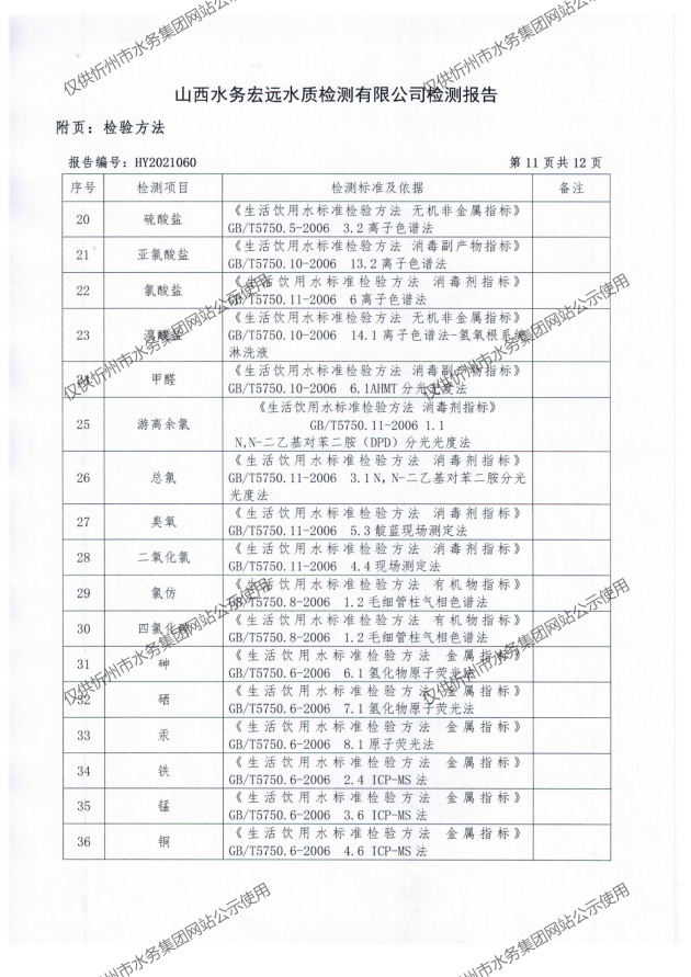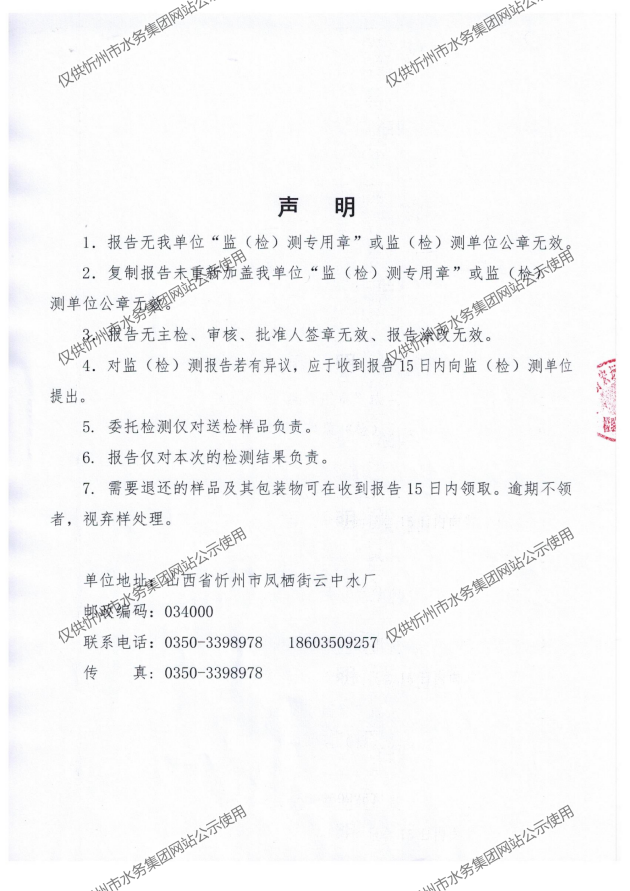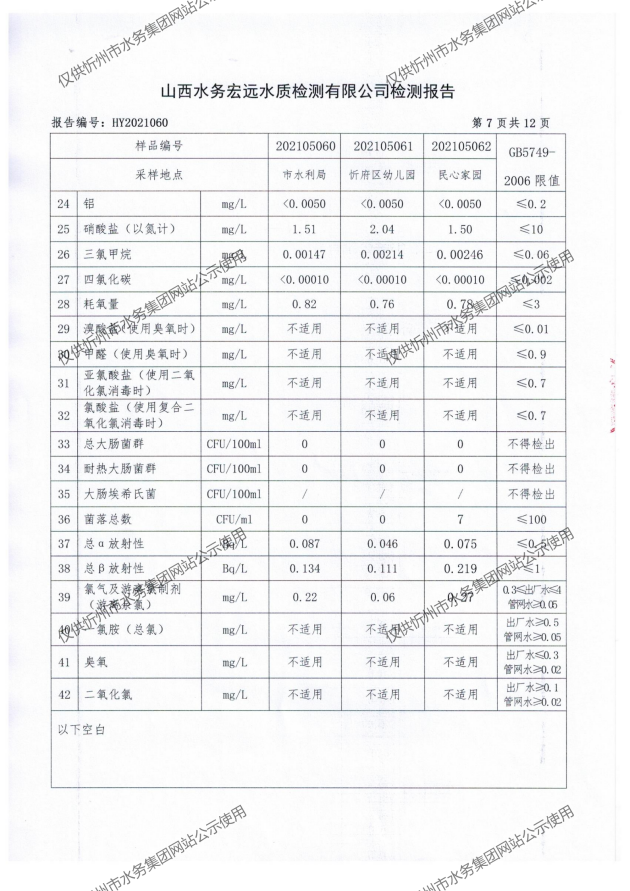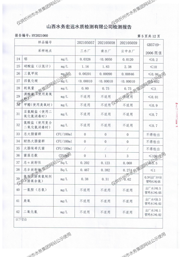 忻州城區(qū)公共供水水源水、出廠水、管網水、管網末梢水2021年5月份水質信息公示