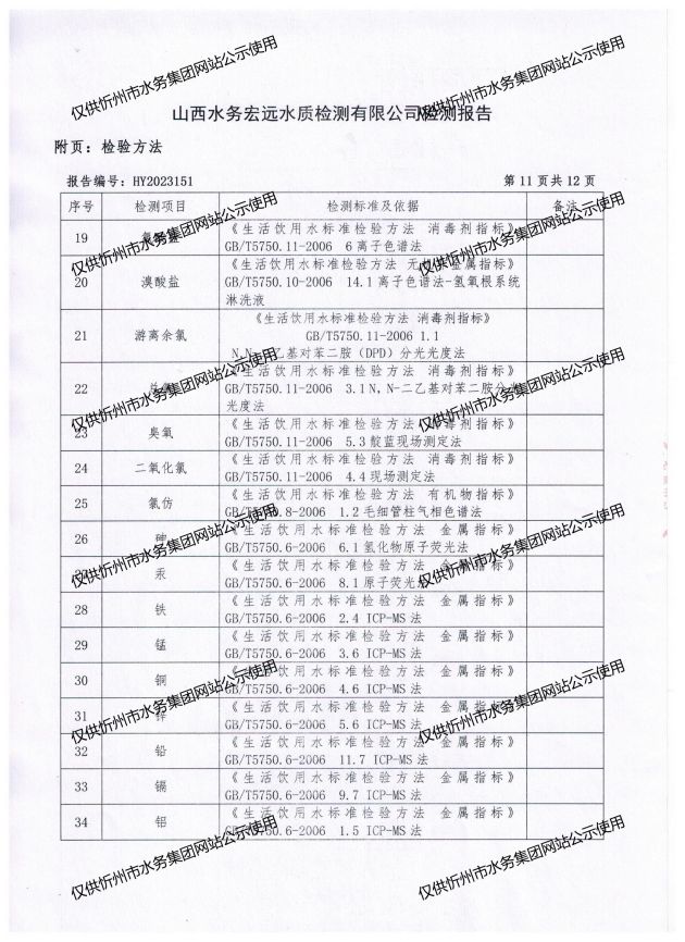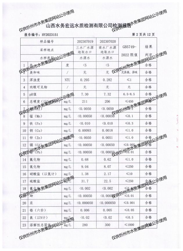 忻州城區(qū)公共供水水源水、出廠水、管網(wǎng)水、管網(wǎng)末梢水2023年7月份水質(zhì)信息公示